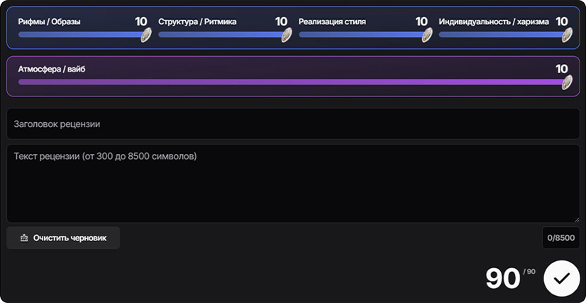 - Авторы могут писать рецензии, получать авторские лайки и участвовать в ТОП-90