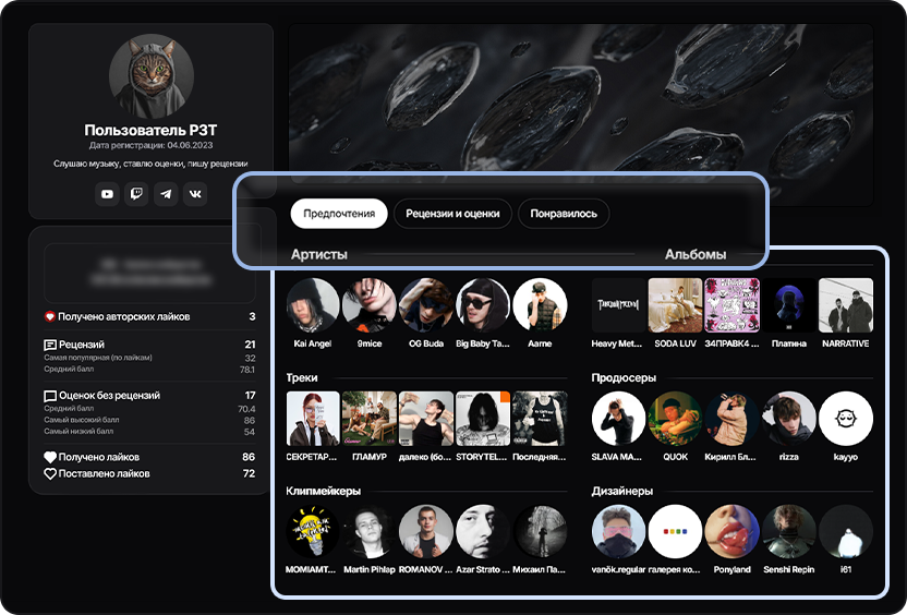 - Дополненная статистика, включая авторские лайки, авторские комментарии и упоминания в музыкальных предпочтениях пользователей