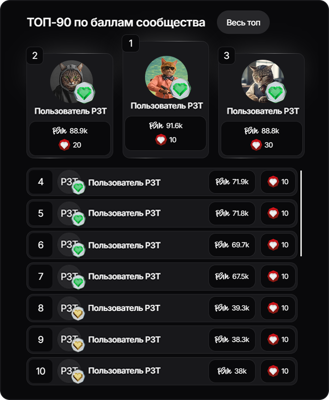- Уровни пользователей по баллам сообщества РЗТ и ТОП-90