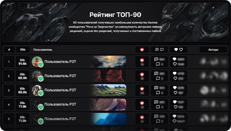 2. Рейтинг ТОП-90 по баллам «Риса за Творчество»