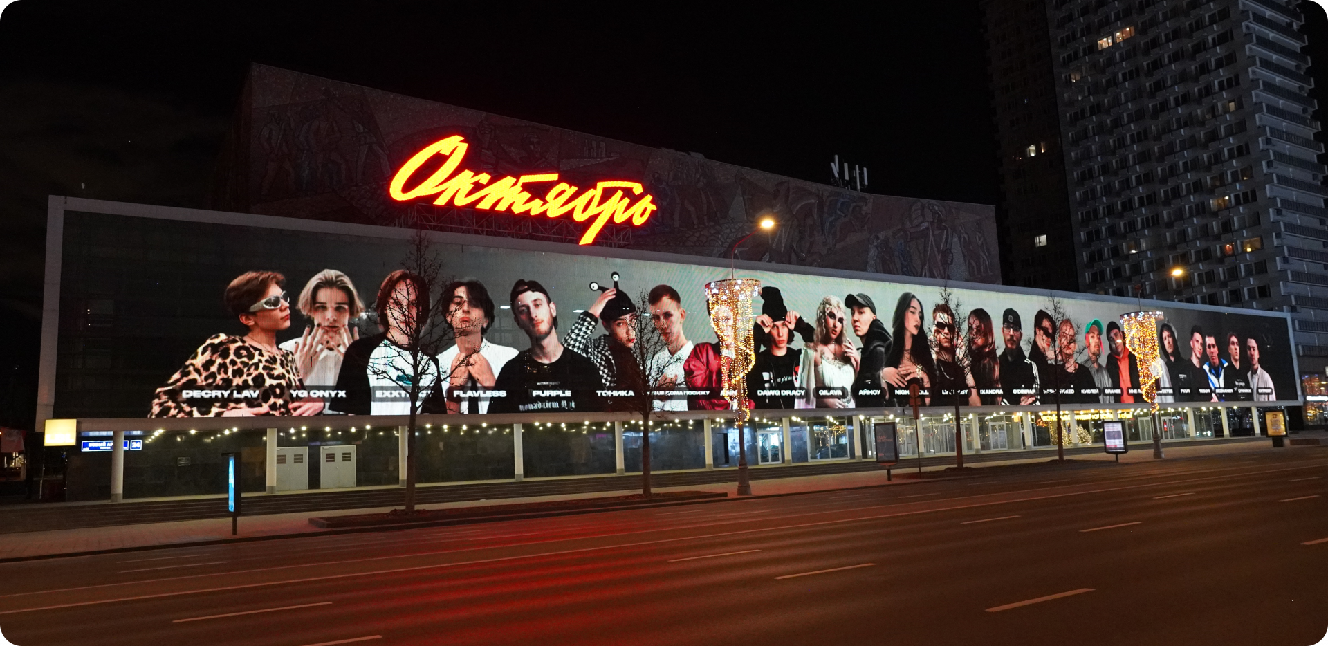 Баннер на кинотеатре «Октябрь» в Москве с победителями конкурса «РЗТПАНЧ FRESHSET»
