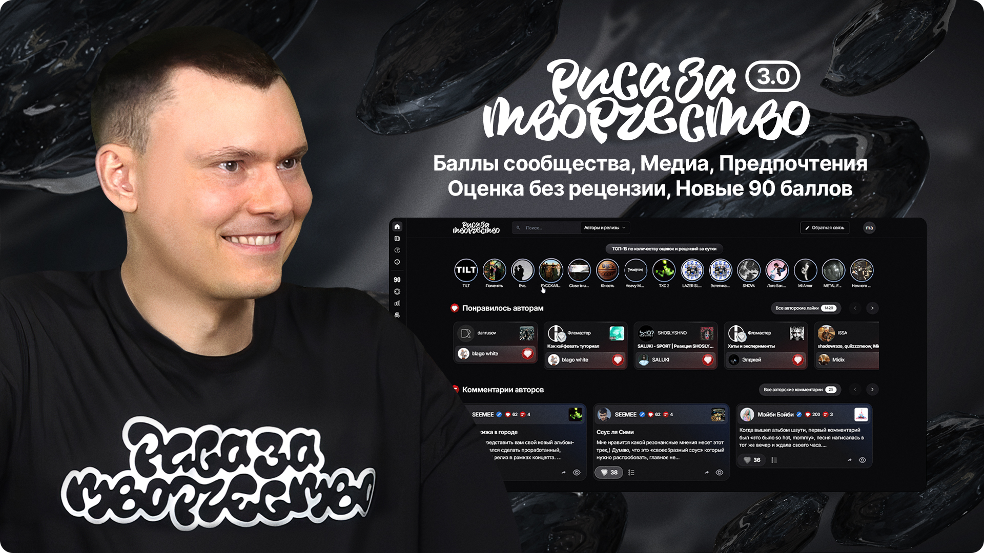- Рейтинг «Топ–90» по баллам сообщества Риса за Творчество