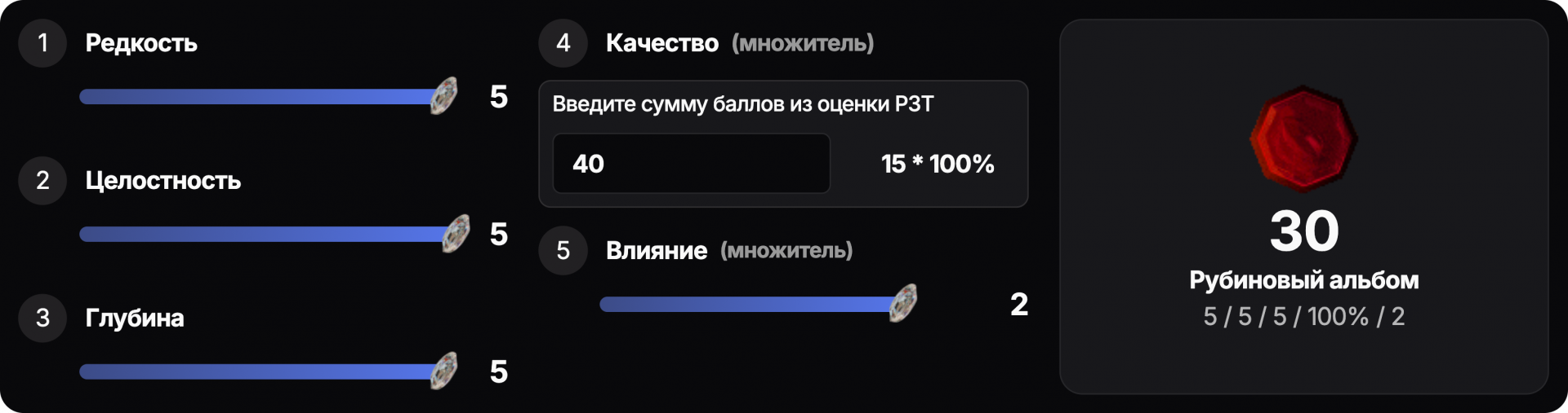 - Общая сумма базовых критериев умножается на десятибалльный множитель «Атмосфера / Вайб»: