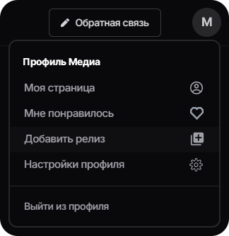 Разместили кнопку «Добавить релиз» в выпадающем меню по клику на аватарку профиля