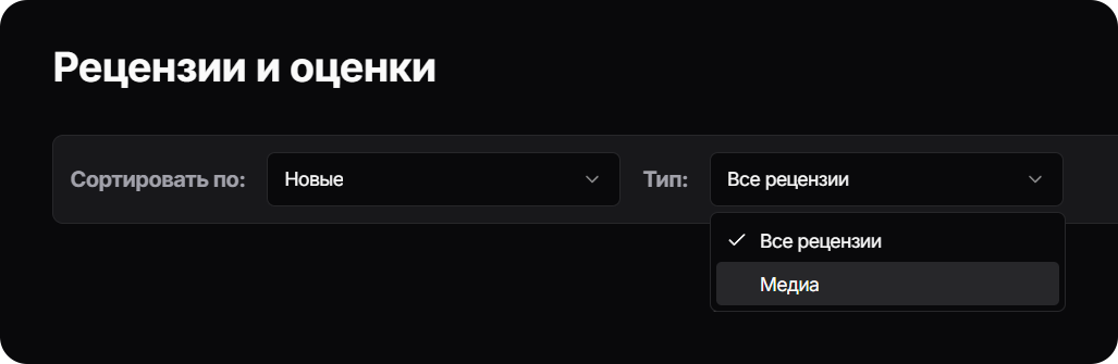 Добавили возможность отсортировать рецензии пользователей с ролью «Медиа» в разделе «Рецензии и оценки»