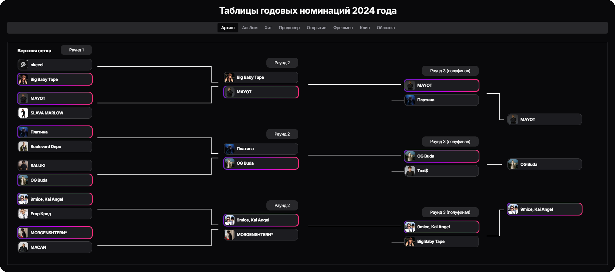 Внесли сетки годовой премии по всем номинациям за 2024 год