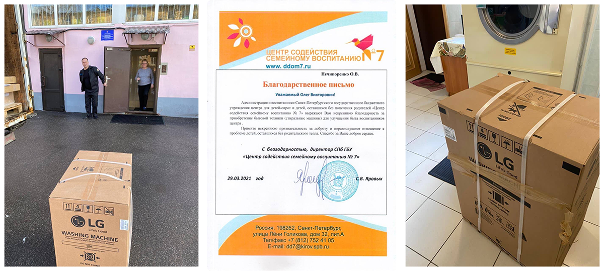 - Победитель РЗТ-32 — KIZARU, пожелал отправить призовые деньги на благотворительность в один из детских домов Санкт-Петербурга. Получателем помощи мы выбрали Центр Содействия Семейному воспитанию №7. Выбор учреждения пал на бытовую технику, а именно – две стиральные машины. Позже Олегу Нечипоренко было направлено благодарственное письмо