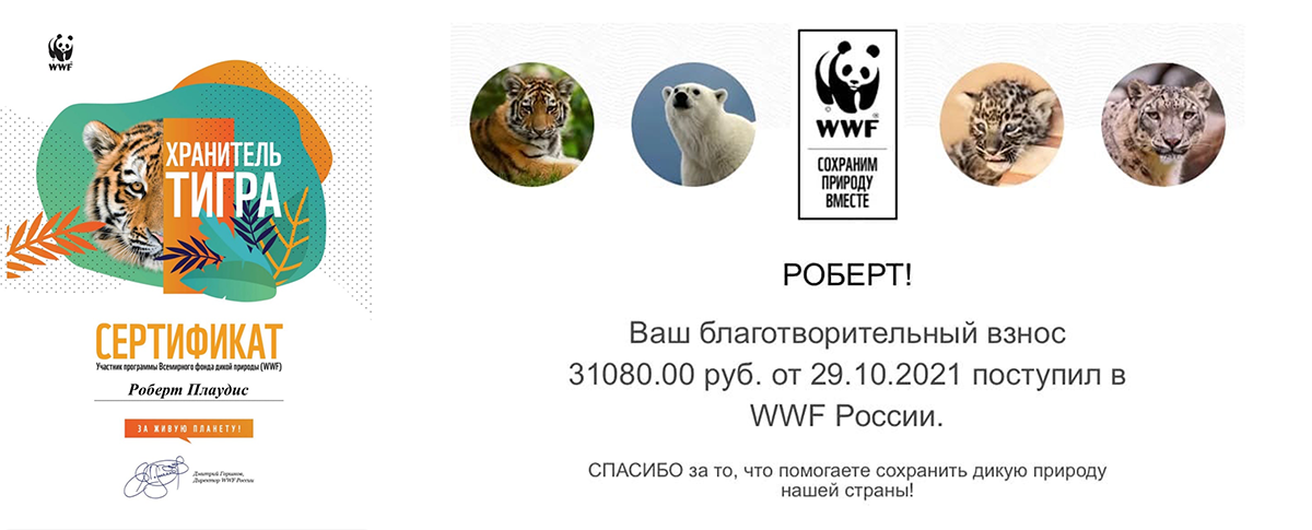 - Победитель РЗТ-40 — Платина, пожелал перевести денежный приз в размере 31 080 ₽ во Всемирный Фонд Дикой Природы (WWF) по программе защиты тигров «Хранитель тигра»