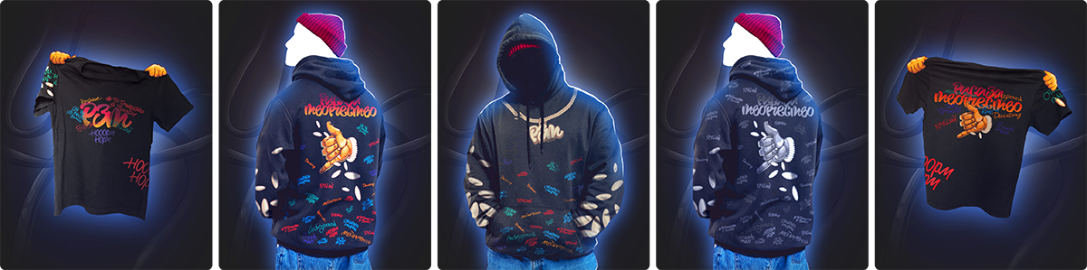В коллекцию мерча вошли худи и футболки с авторскими принтами