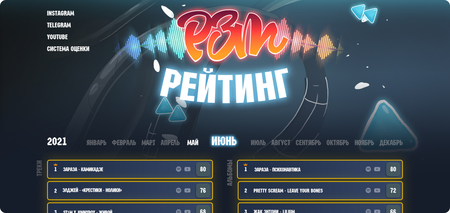 Появился сайт «РЗТ-Рейтинг», где отображаются 25 лучших треков и 10 лучших альбомов за выбранный период от месяца до года с ссылками на записи разборов на YouTube и на релизы в музыкальном сервисе Spotify