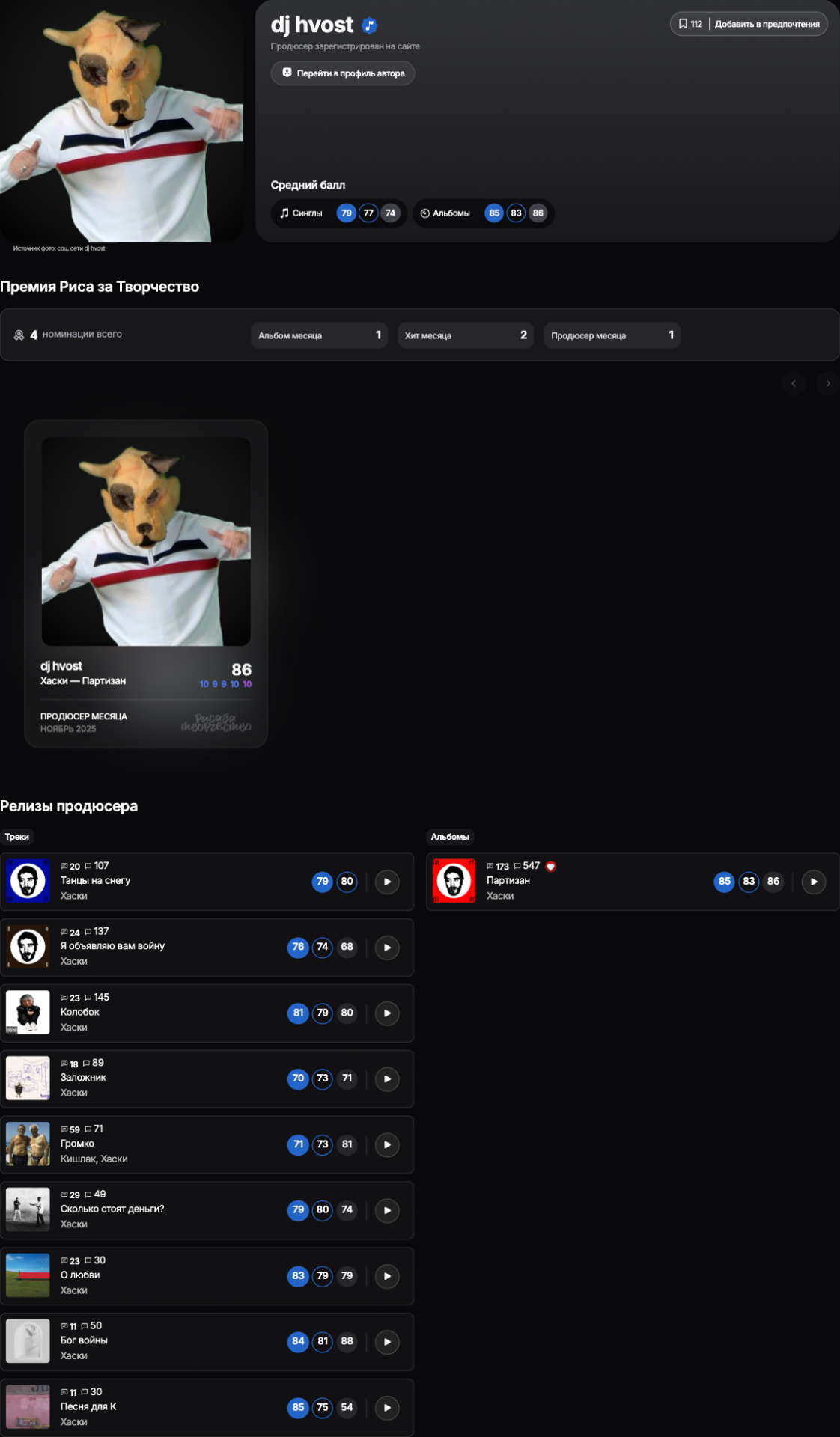 Риса за Творчество — крупнейшее русскоязычное сообщество обозревателей и ценителей музыкальной индустрии