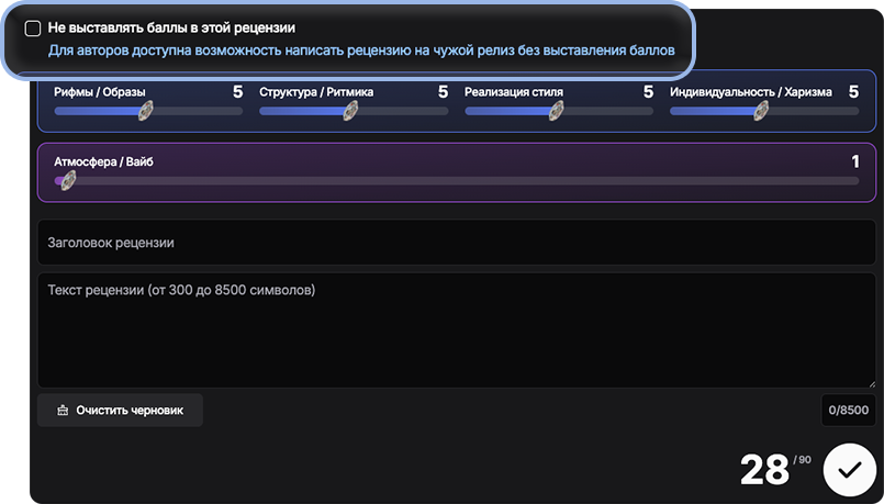 Добавили возможность писать рецензии на работы других авторов без выставления баллов по нажатию соответствующей галочки