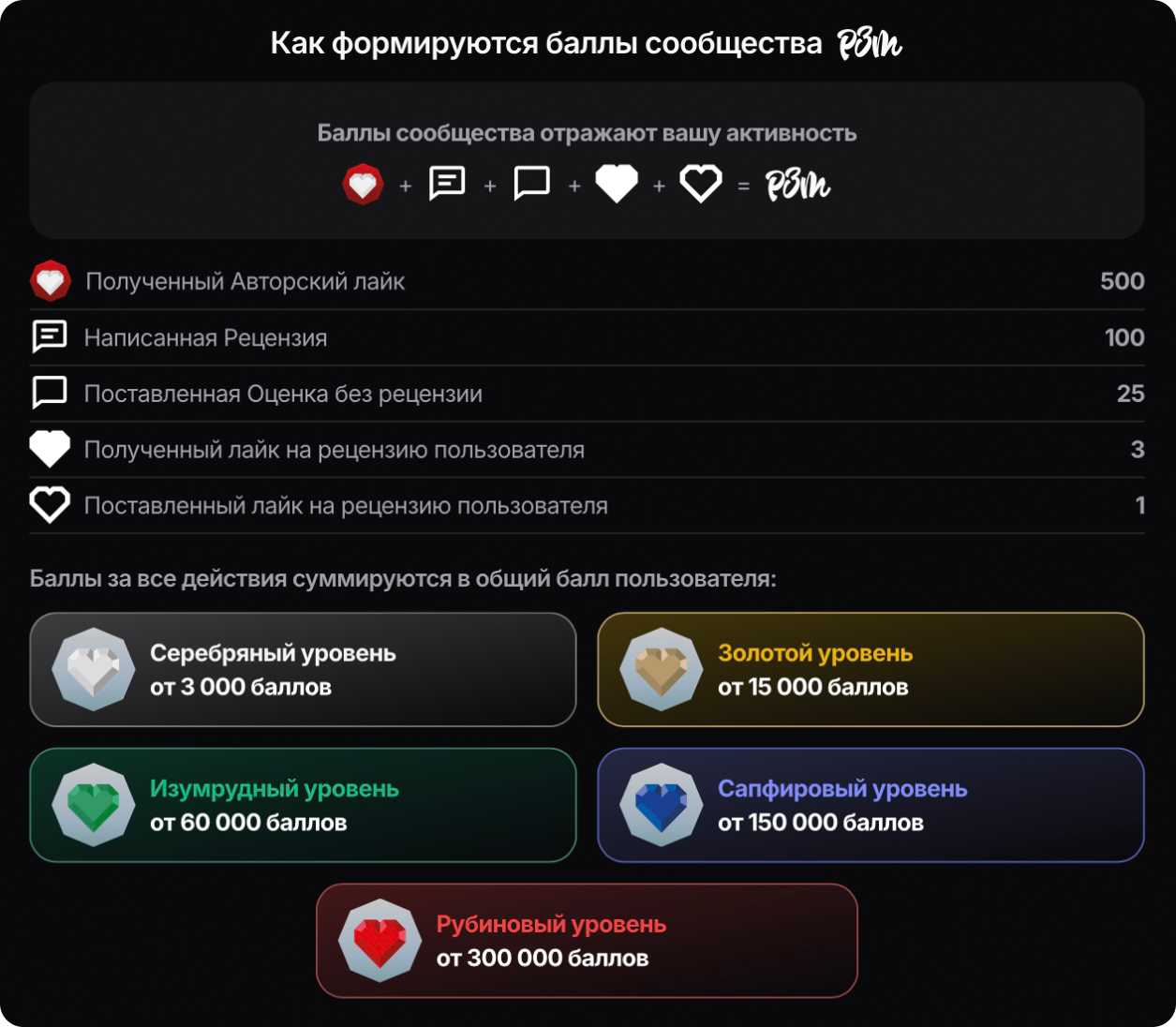 Сделали редизайн окна баллов сообщества и уровней пользователей