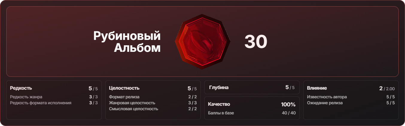 За время существования шкала показала свою высокую эффективность в присвоении ценности альбомам — она широко охватывает не только качество релиза, но и выделяет как жанровые, так и стилевые особенности, отражая влияние артиста и уровень ожидания конкретной работы, но на дистанции мы и наше сообщество столкнулись с тем, что отдельные критерии недостаточно гибко позволяют показать различные аспекты в формировании итоговых баллов.