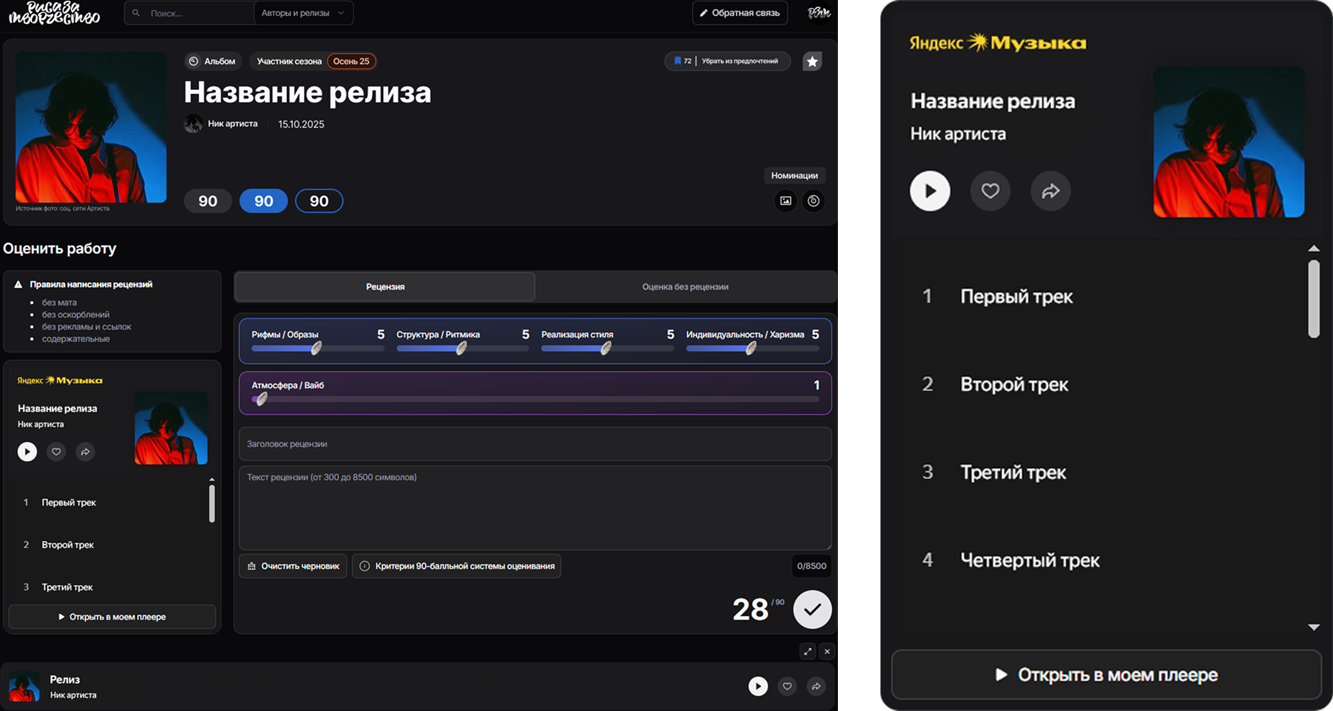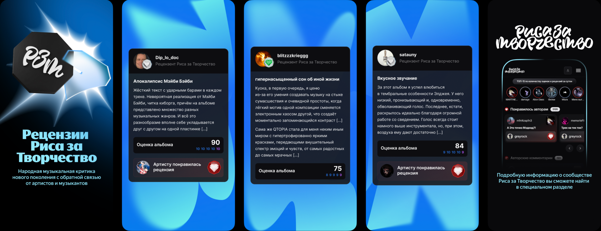 В рамках сотрудничества крупнейшее русскоязычное сообщество рецензентов и ценителей музыкальной индустрии «Риса за Творчество» и главный стриминговый сервис «Яндекс Музыка» предлагают свои инструменты для создания уникального формата погружения в музыкальные релизы и взаимодействия слушателей с авторами музыки
