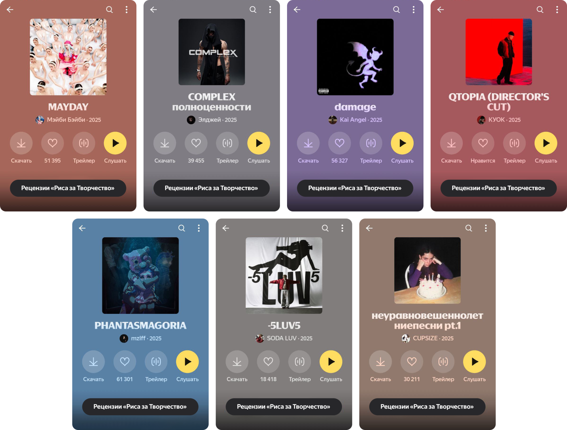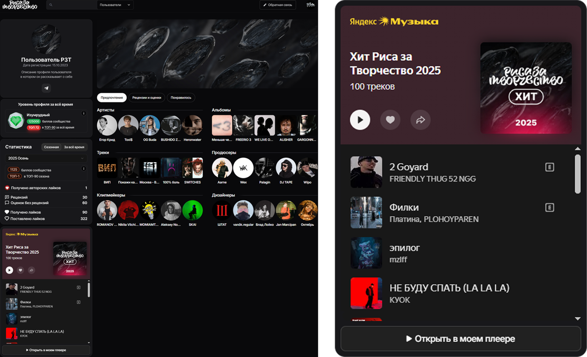 Знаковые музыкальные релизы в «Яндекс Музыке» будут сопровождаться подборкой цитат из рецензий пользователей, а так же обратной связью от артистов в виде «Авторских лайков» и «Авторских комментариев» с сайта «Риса за Творчество»
