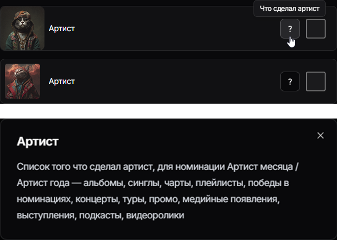 - В голосовании на «Премии Месяца» участвуют авторы и работы с высоким запросом на сайте со стороны нашего сообщества в рамках календарного месяца, а также с прямых эфиров на Twitch