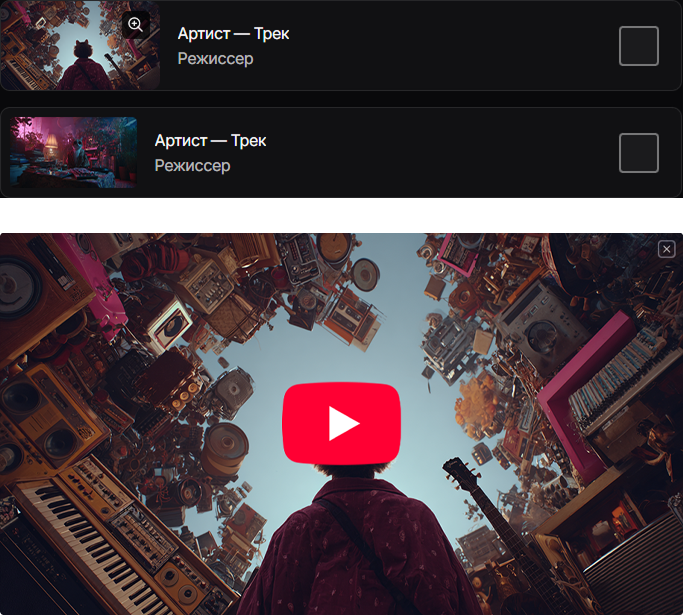 Посмотреть номинируемый клип при наведении и нажатии на обложку