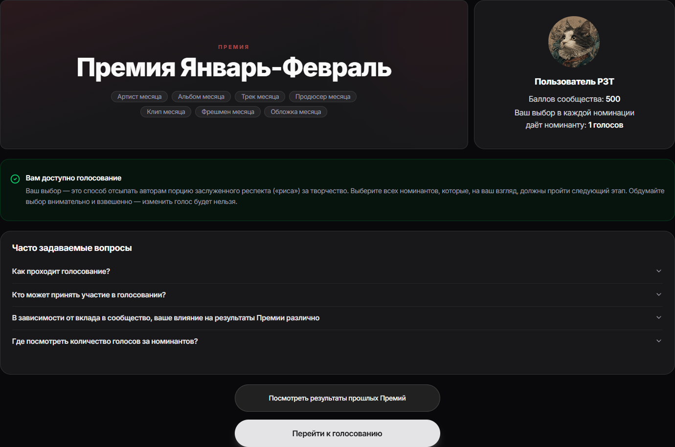 Начиная с «Премии года РЗТ 2025» на сайте внедрён функционал голосований в Премиях