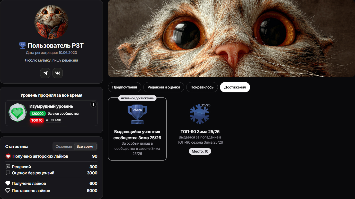 - Добавили возможность самостоятельно выбрать, какое достижение будет отображаться рядом с никнеймом пользователя